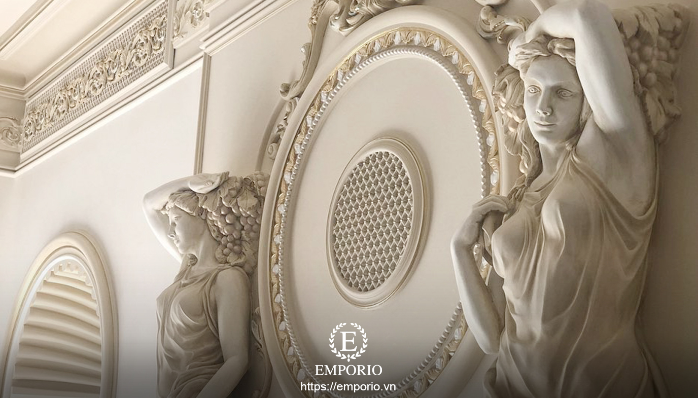 Phù điêu thạch cao là tác phẩm điêu khắc trên bề mặt phẳng, có độ nổi nhất định để tạo hiệu ứng ba chiều. Chúng thường được sử dụng trong trang trí nội thất, công trình kiến trúc cổ điển và hiện đại, mang đến vẻ đẹp sang trọng và nghệ thuật.