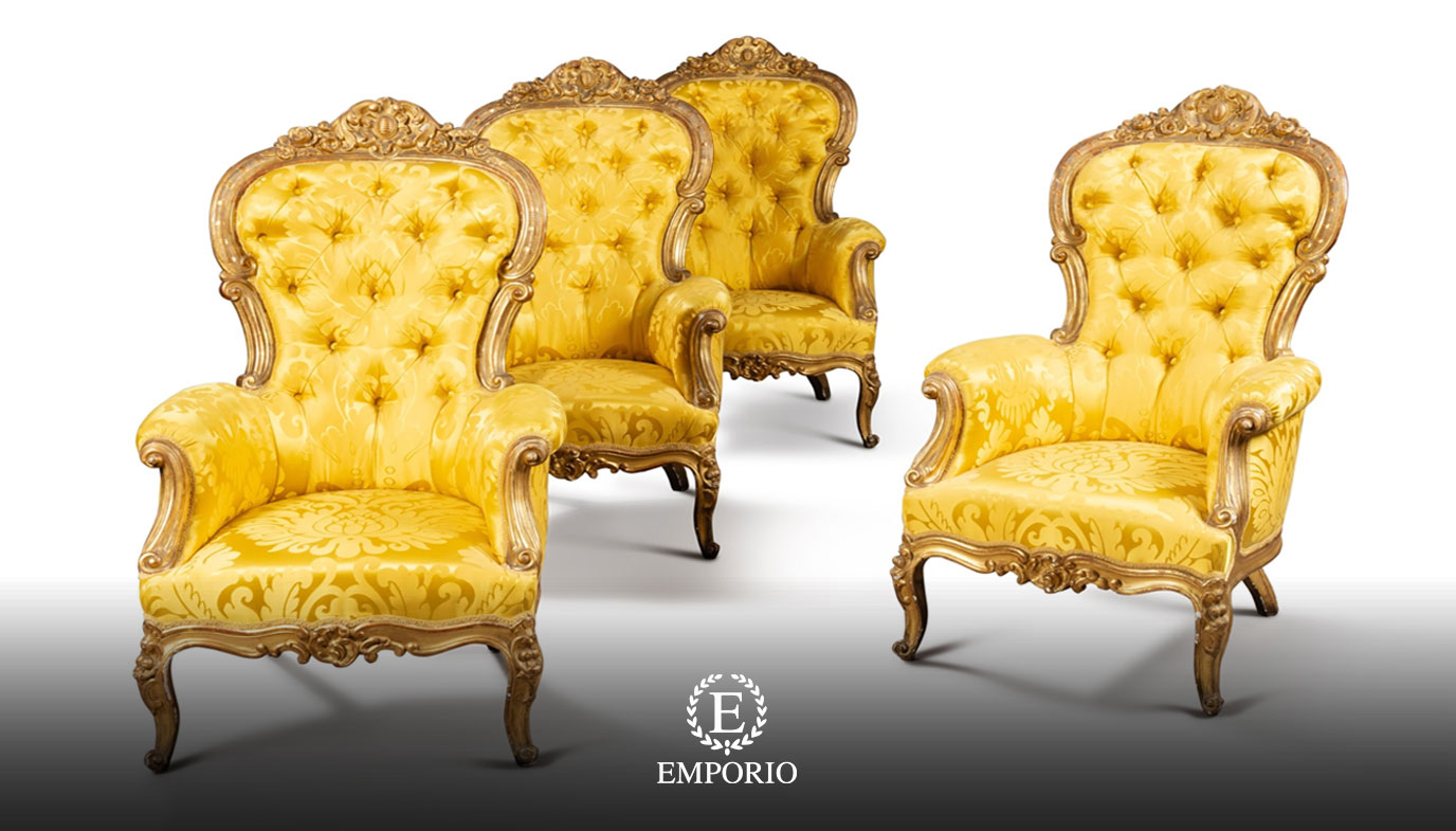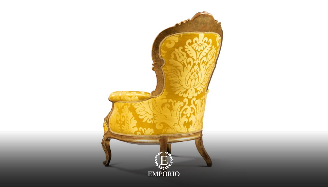 Ghế cổ điển Emporio không chỉ là một món đồ nội thất, mà còn là biểu tượng của sự xa hoa và đẳng cấp. Thiết kế bề thế với lưng ghế cao, hoa văn chạm khắc tinh xảo và màu vàng hoàng gia lộng lẫy tạo nên một tuyệt tác nghệ thuật, tôn vinh giá trị thẩm mỹ của không gian sống.