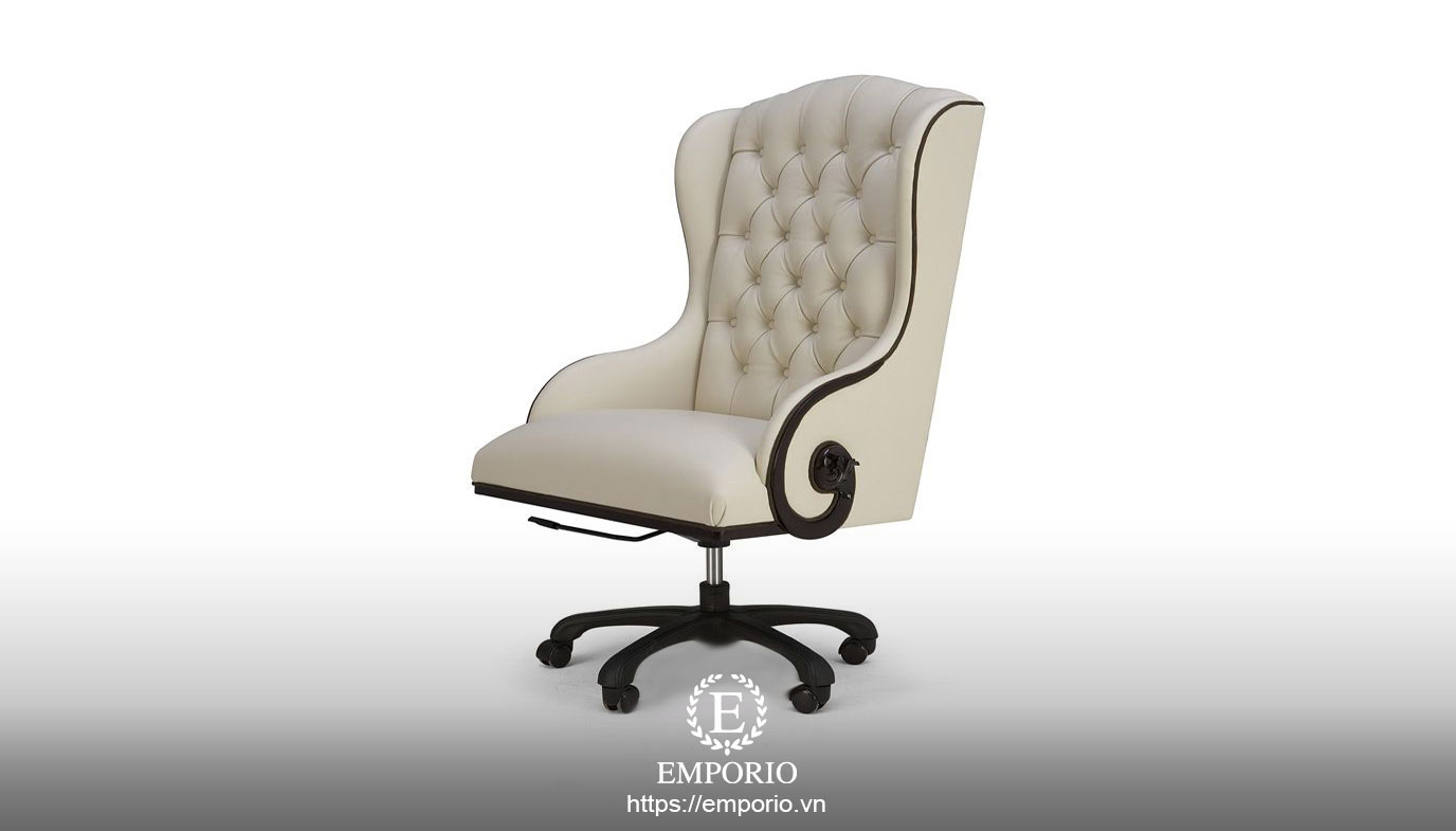 Chiếc ghế nổi bật với thiết kế thanh lịch, tinh giản nhưng không kém phần uy nghi, phù hợp với mọi không gian văn phòng giám đốc, từ phong cách hiện đại đến cổ điển. Đường nét ghế được chăm chút tỉ mỉ, tạo nên tổng thể hài hòa, lịch thiệp và mạnh mẽ – phản ánh đúng phong thái của người đứng đầu.