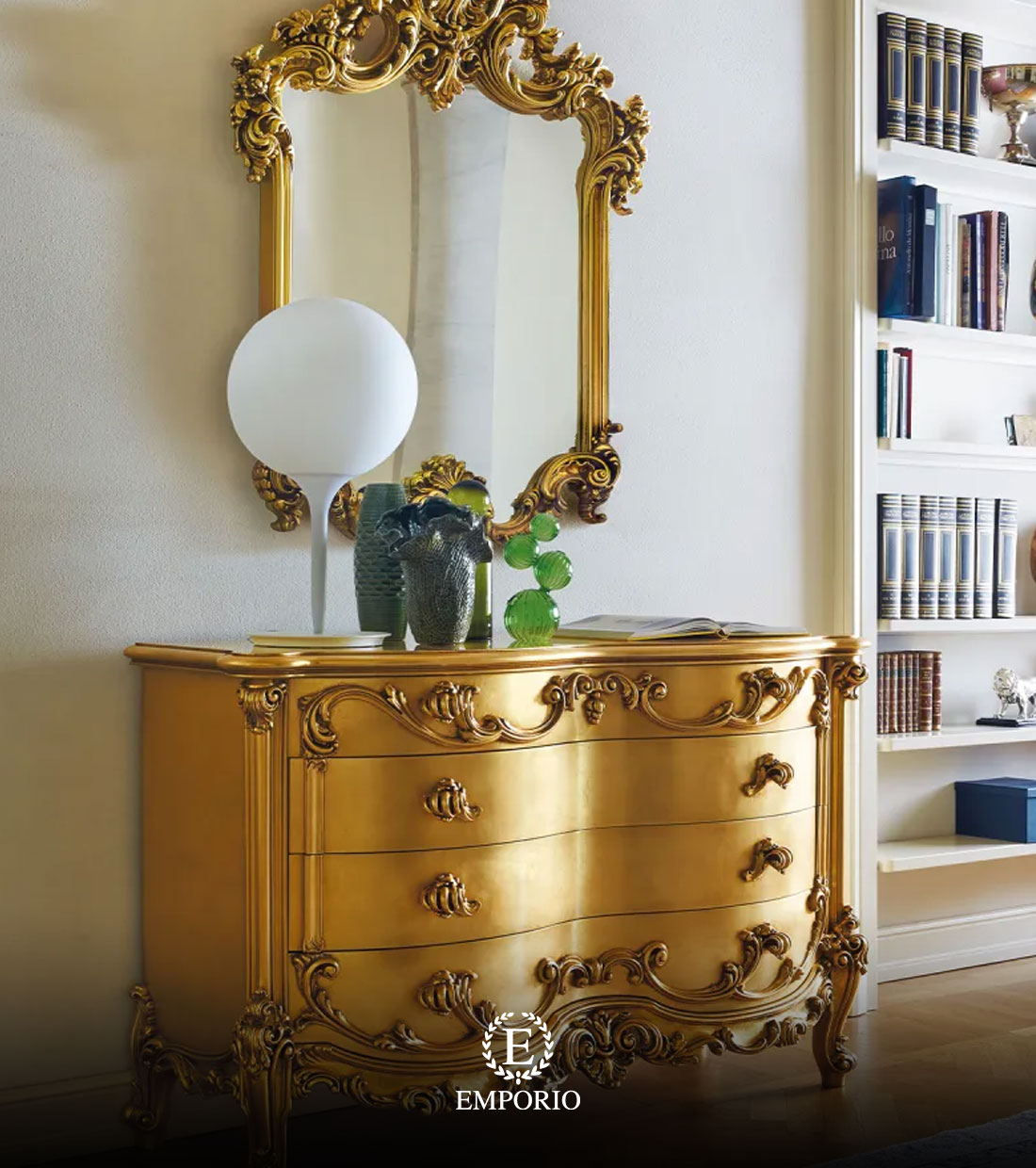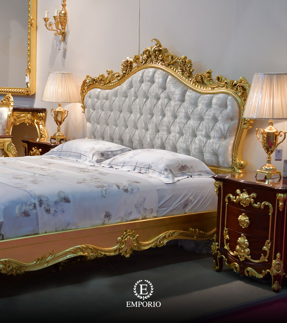 Giường ngủ cổ điển dát vàng là sự kết hợp hoàn hảo giữa nghệ thuật thiết kế nội thất châu Âu hoàng gia và sự tinh tế trong từng đường nét chạm khắc. Mỗi chi tiết được đục chạm thủ công tỉ mỉ, thể hiện sự tài hoa của những nghệ nhân lành nghề, tạo nên vẻ đẹp độc bản và giá trị trường tồn theo thời gian.