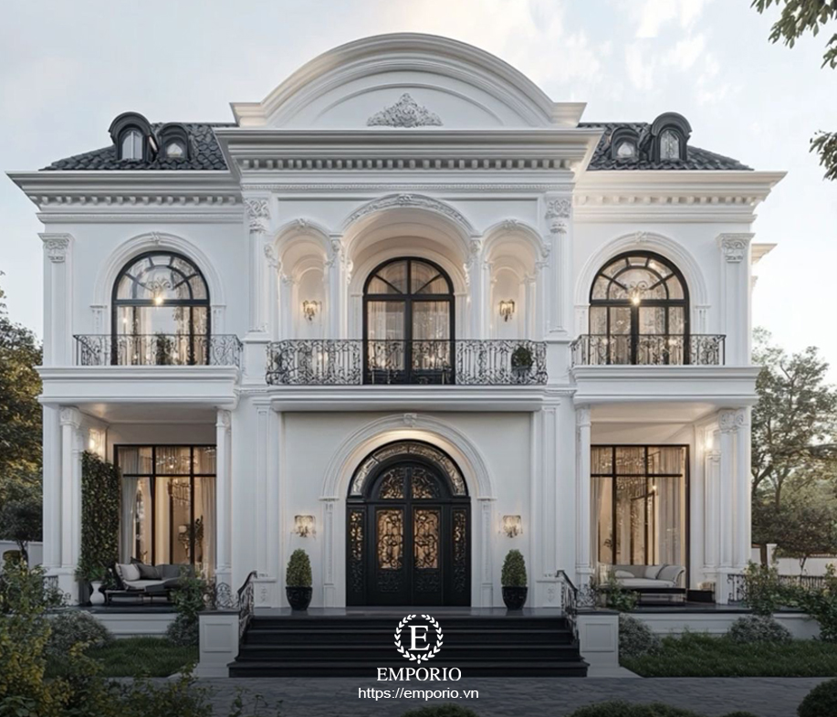 Những mẫu biệt thự này thường có thiết kế đối xứng, các đường nét hoa văn tinh xảo nhưng không quá cầu kỳ, tạo nên vẻ đẹp thanh lịch và đẳng cấp.